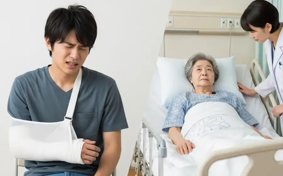 - 日常生活での事故:階段からの転落による骨折、料理中のやけど、ドアに指を挟むなど。